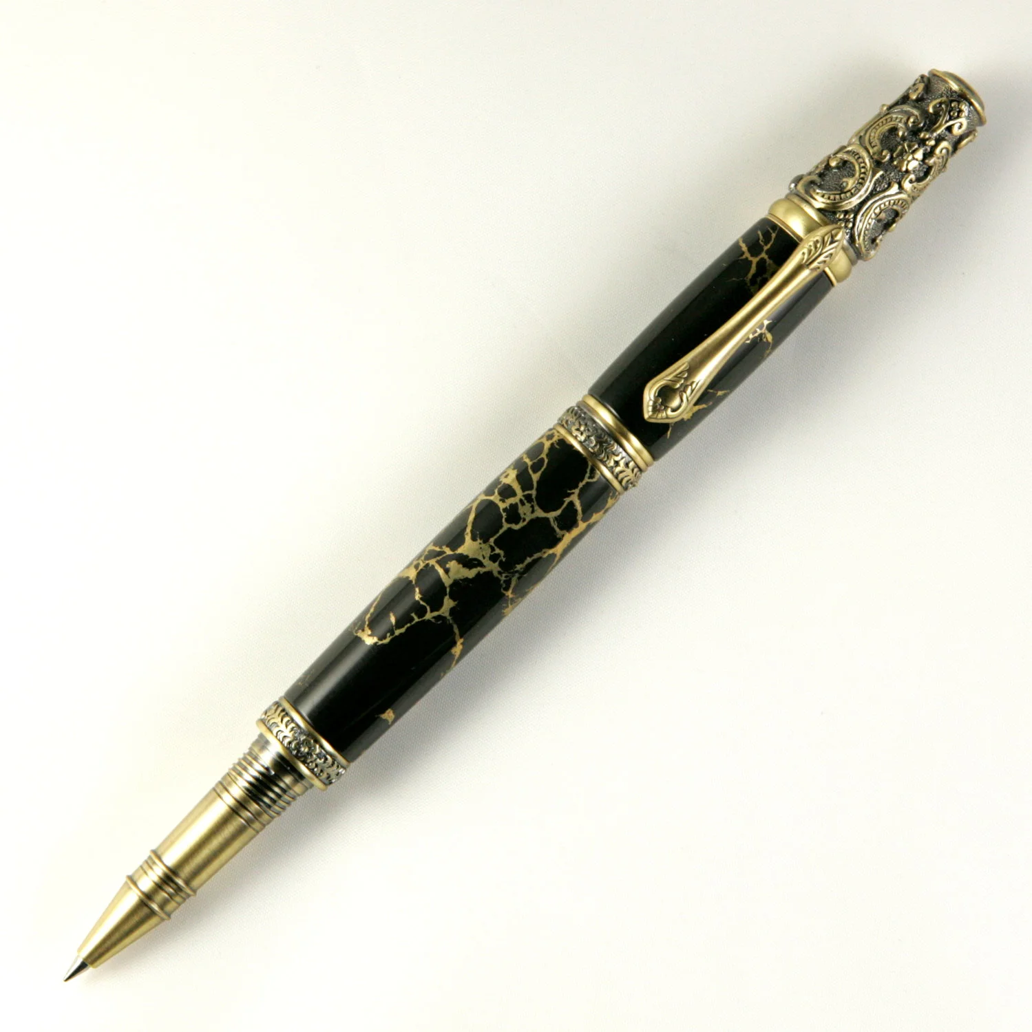 Leather and Copper Fountain or Rollerball Magnetic Vertex Pen