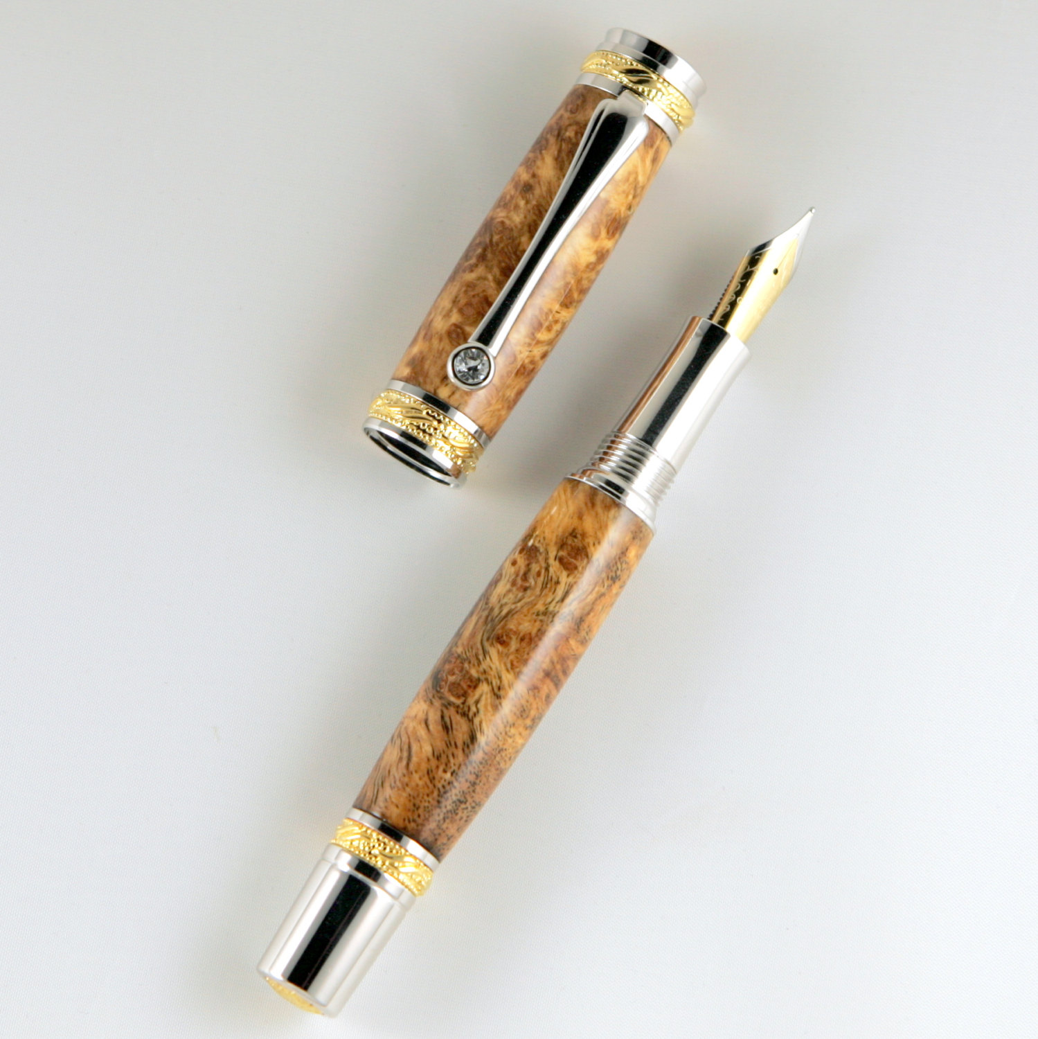 Amboyna Burl Majestic Full-Size Fountain or Rollerball Pen
