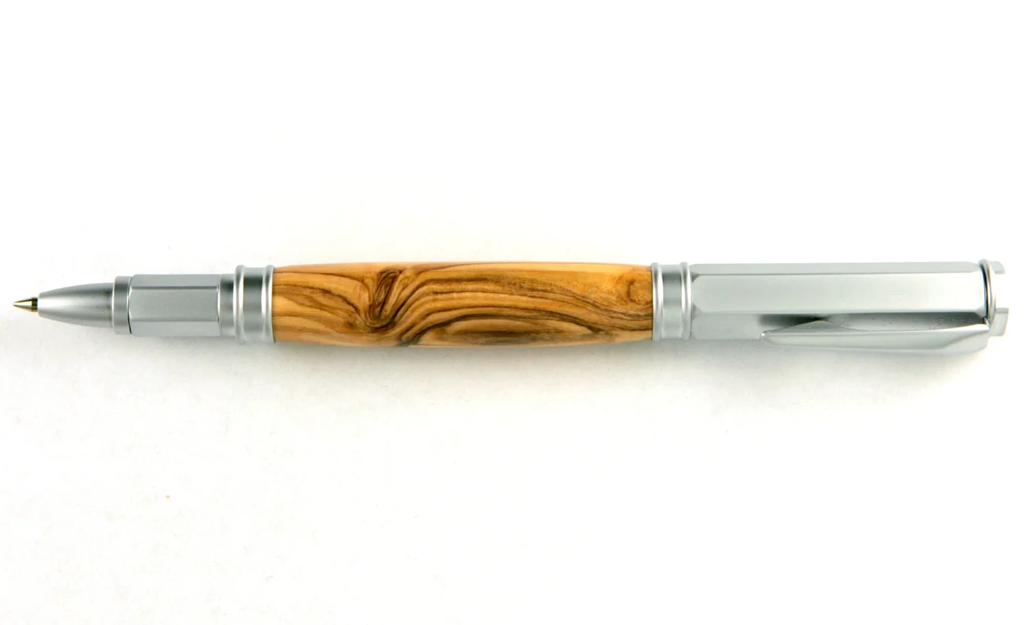 Bethlehem Olive Wood Magnetic Vertex Brushed Satin Fountain or Rollerball Pen