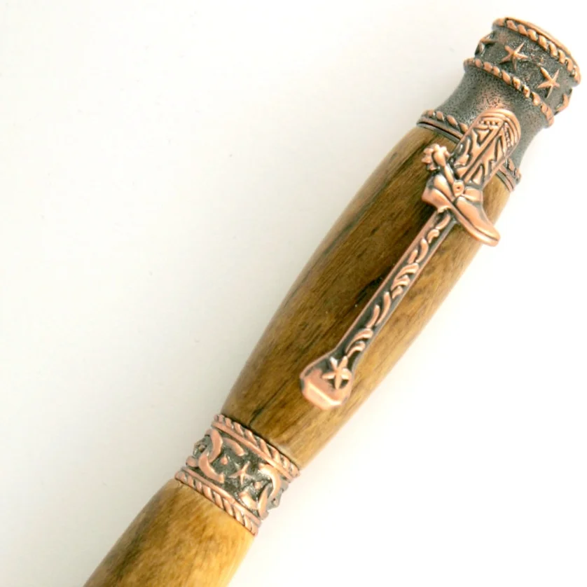 This very unique western-style pen is made from a real Saguaro cactus rib. Saguaros are found only in the Sonoran Desert, which is in southern Arizona and northern Mexico. This piece is from Tucson, AZ. The pen has a durable acrylic finish that will never wear.
