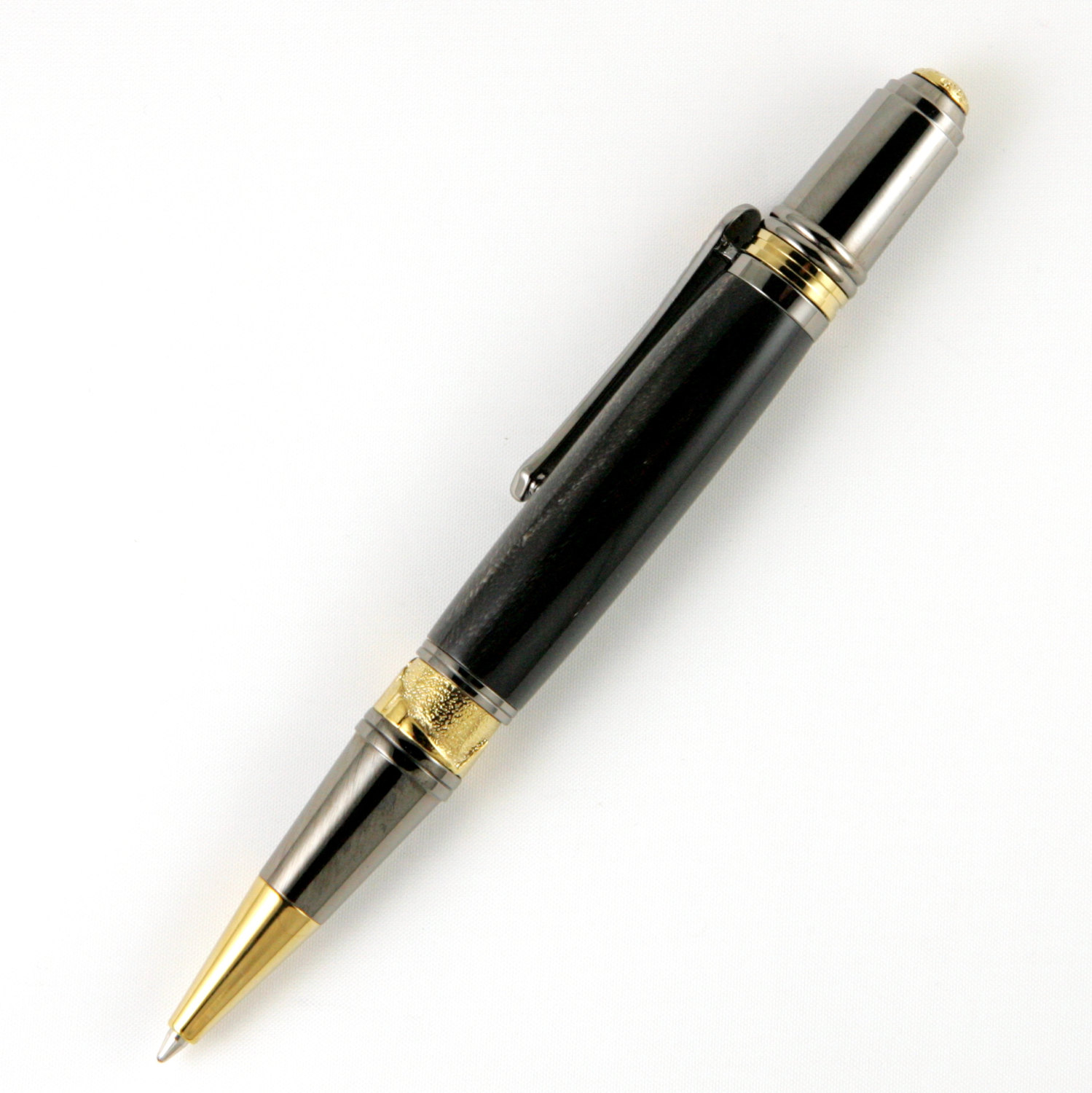 This is a shorter pen that fits comfortably in the hand and has a solid feel. The unique and exotic hand-turned buffalo horn comes from India. The pen features a sparkling Swarovski crystal set in the clip that completes this pen's appearance.The pen components are plated with high-quality Gold TN and Black TN.