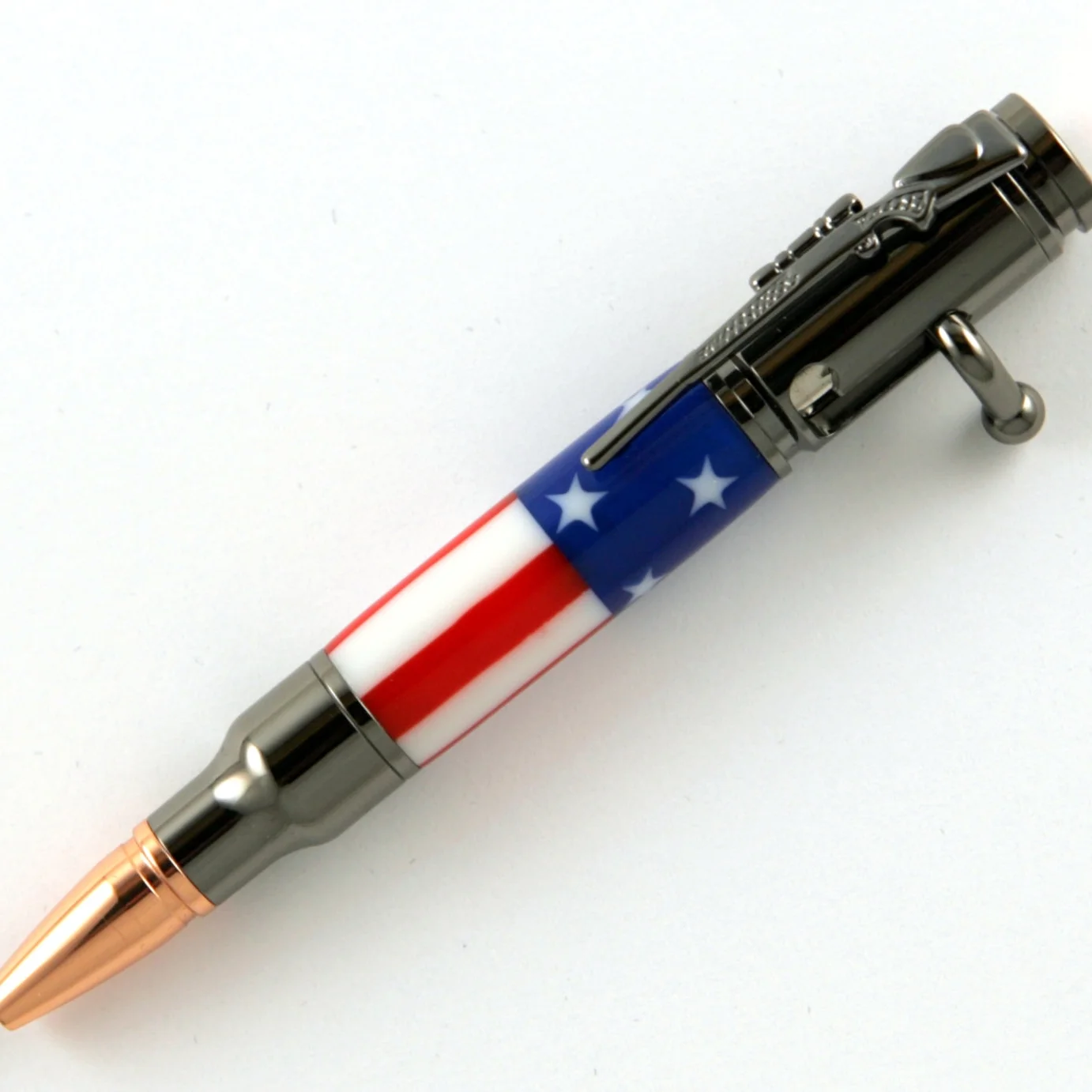 Patriotic Stars & Stripes Acrylic Mini 30 Caliber Bolt Action Gun Metal Pen