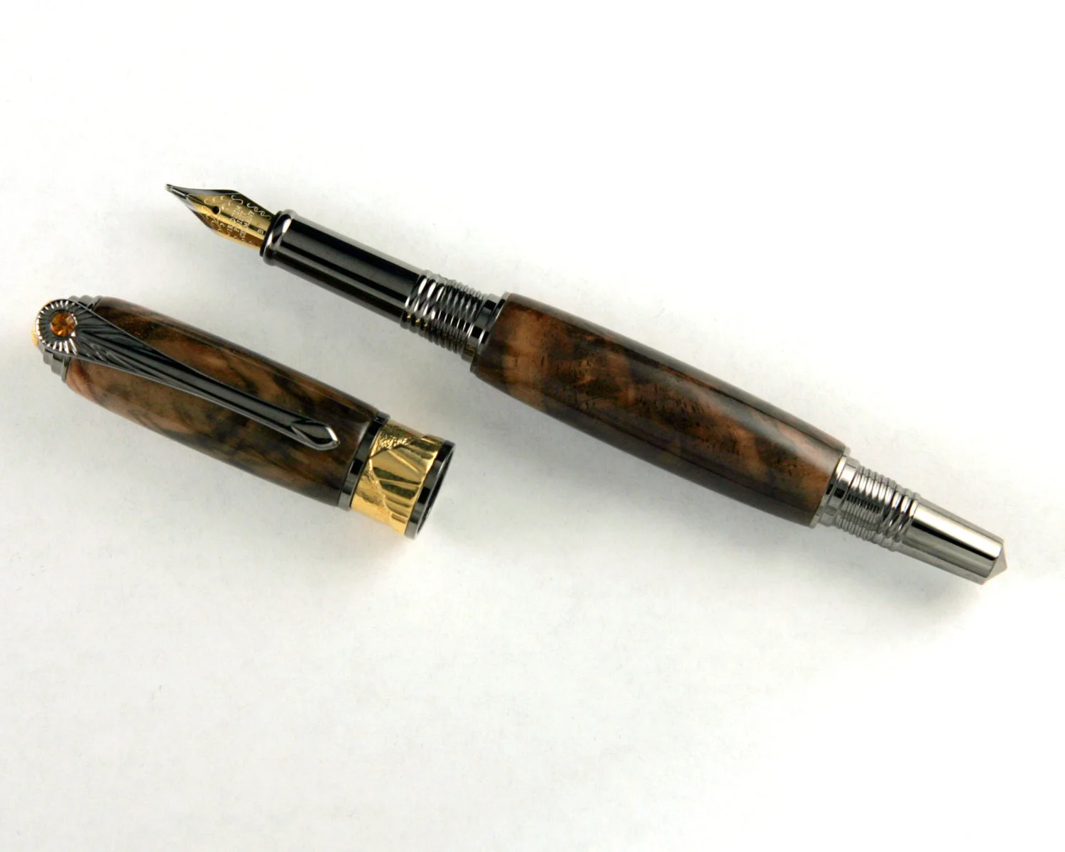 Walnut Burl Broadwell Art Deco Black TN and 22kt Gold Fountain Pen.