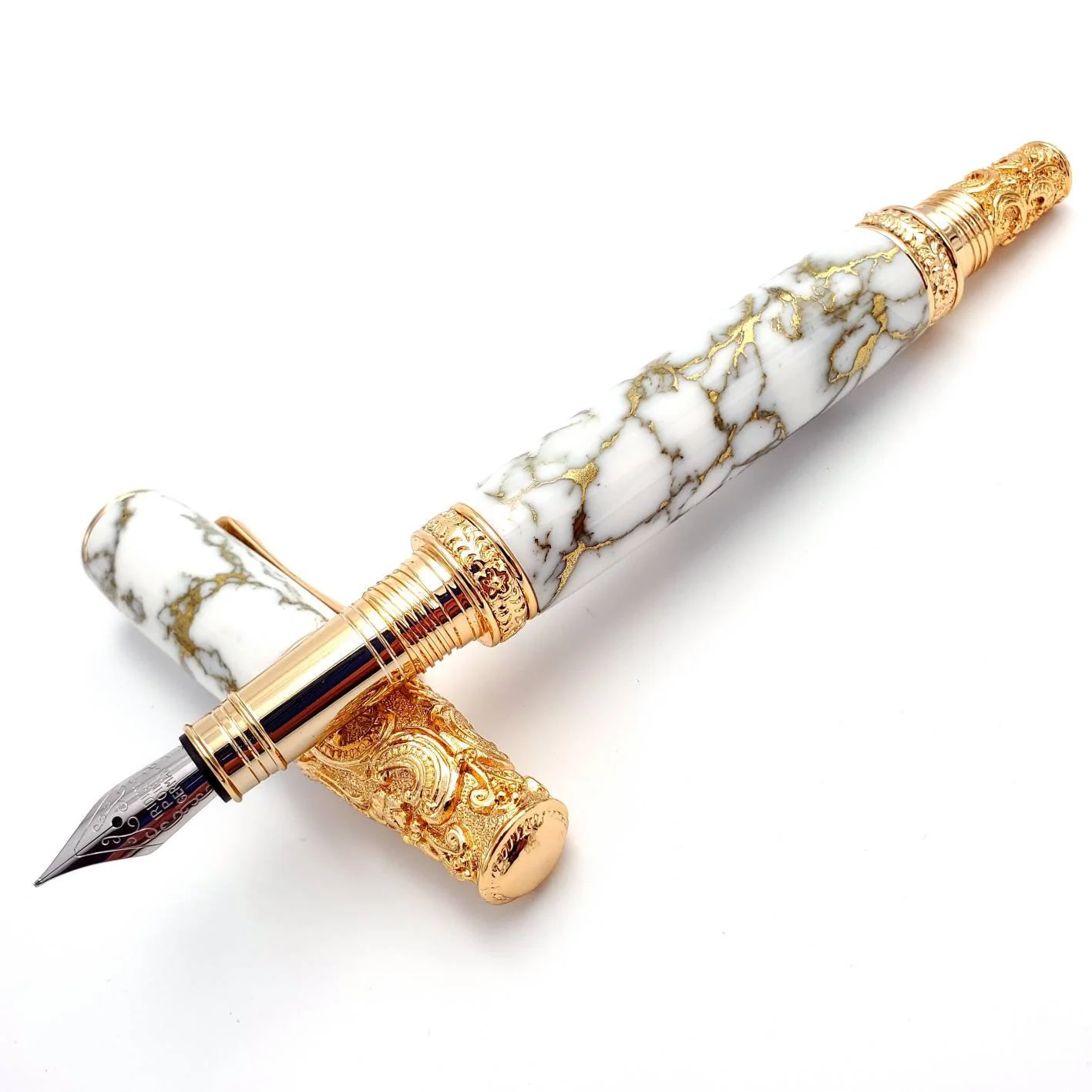 White marble TruStone Victorian 24kt Gold Fountain or Rollerball Pen